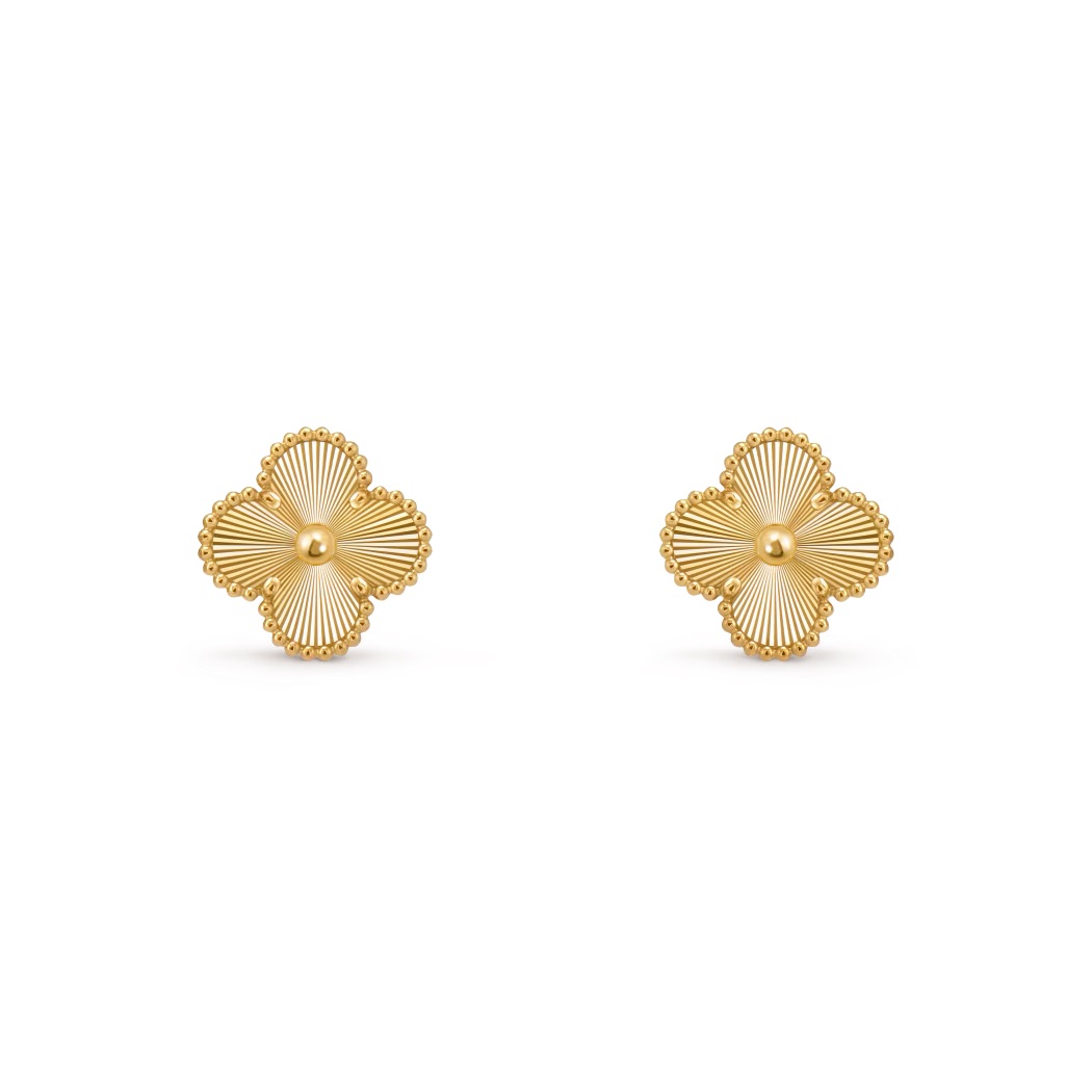 Elegant stud earrings from the Vintage Alhambra collection, crafted in yellow with refined guilloché detailing. The clover motif symbolizes luck and timeless elegance, making them perfect for daily wear or special occasions.